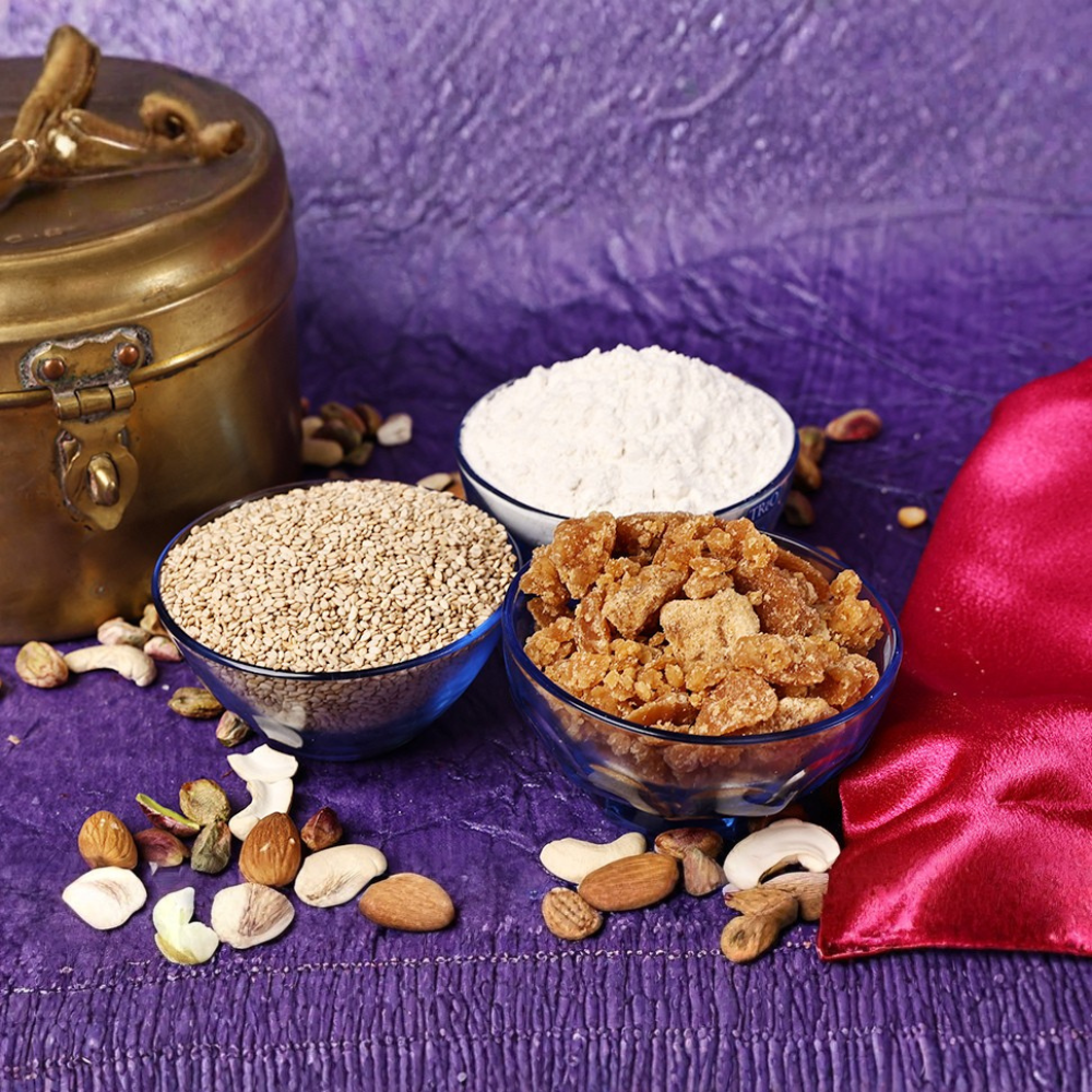 We use unpolished black sesame seeds. The husk (skin) contains the maximum flavor and calcium. In Nuvvula Podi, the slight bitterness of the skin balances the sweetness of the jaggery.