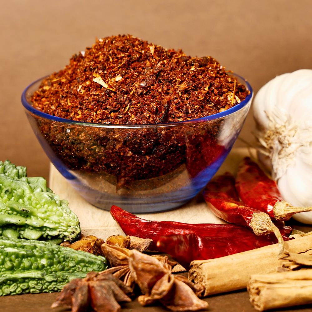 A balanced blend of Guntur Sannam for heat and Warangal chilli for color, delivering vibrant appearance and perfect spice levels.