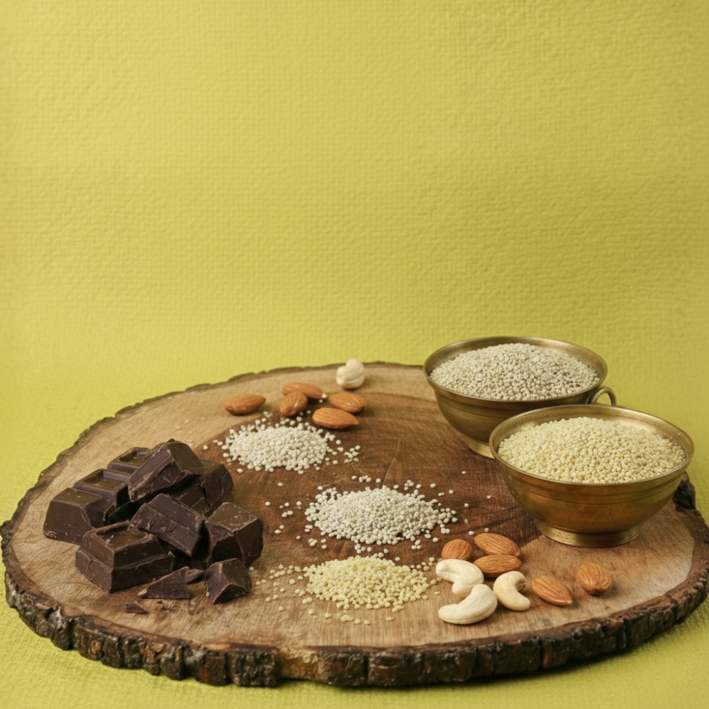 Introducing the tastiest way to consume millets – The Pickle Story’s Chocolate Millet Health Mix. We have combined the goodness of Kodo & Pearl Millets with Almonds, Cashews, and rich Unsweetened Cocoa.