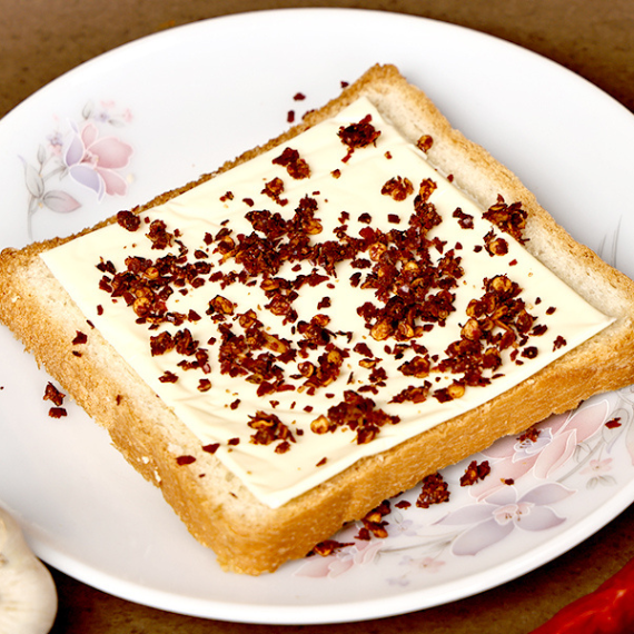 We make these roasted garlic chilli flakes fresh in small batches, ensuring every sprinkle brings you the authentic taste. All the ingredients are expertly dry-roasted to perfection, releasing their full aroma and flavour without needing any added oils. You will not find any preservatives or chemicals here, only the goodness of traditional Andhra cooking. Our kitchen operations are FSSAI approved and GMP Certified, reflecting our high standards for safety and purity.