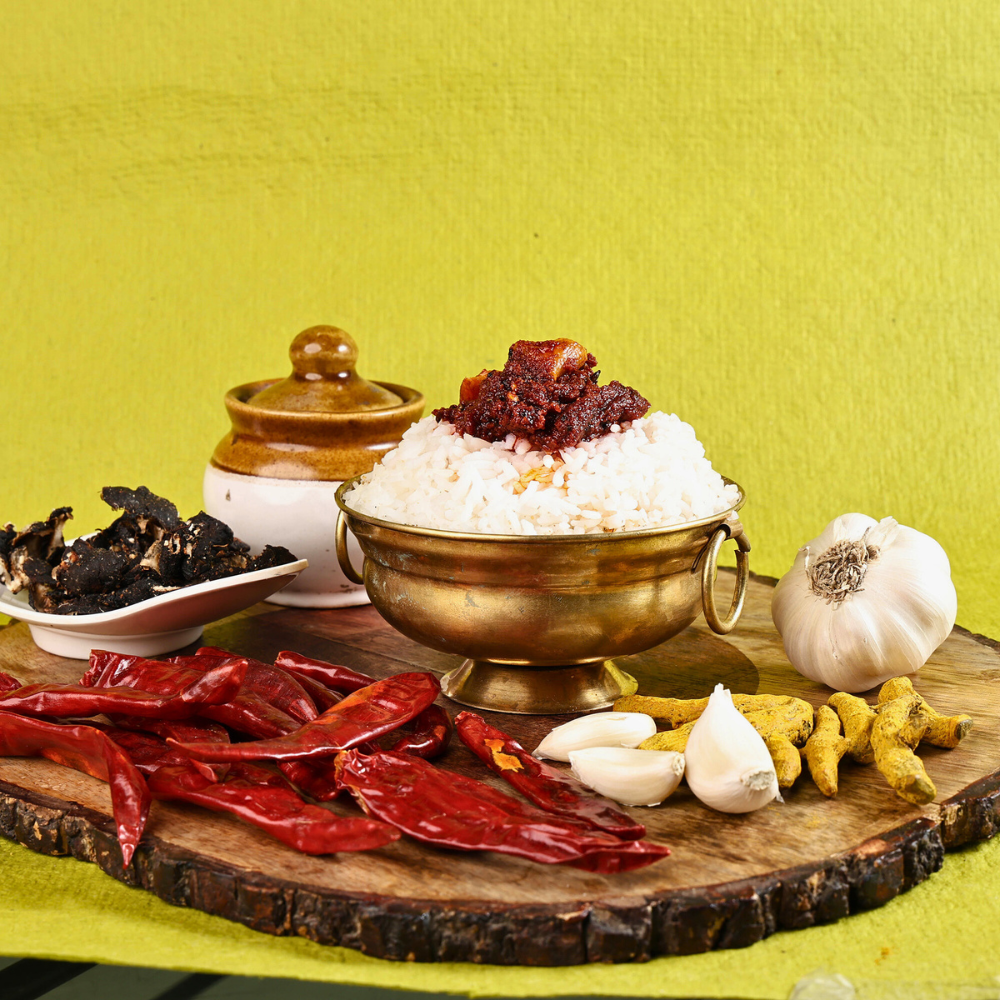 Small black mustard seeds provide strong pungency and act as a natural preservative.