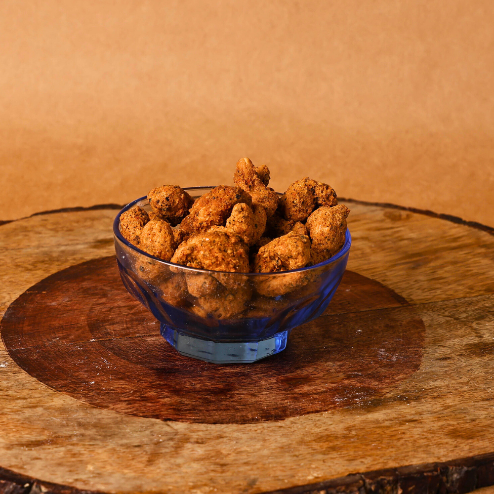 Our Masala Pepper Kaju offers a delightful twist on a classic, transforming simple cashews into an irresistible, flavourful snack. Each cashew is generously coated with a aromatic blend of traditional Indian spices and a hint of black pepper, creating a savoury and subtly spicy experience. This snack evokes the warmth of a festive gathering, a special treat from grandmother’s kitchen, perfect for sharing or savouring all by yourself. | These cashews are carefully roasted in small batches to achieve their perfect crunch and absorb every bit of the homemade spice blend. We use only pure, refined sunflower oil for a light, crisp finish, ensuring they are healthier than many commercial snacks that use cheaper, less desirable oils. You’ll find no artificial preservatives or chemicals here, just natural goodness. Prepared under FSSAI approved and GMP certified conditions, just like at home. | This flavourful Kaju has quickly become a favourite, cherished for its authentic taste and natural preparation. Over 7,000 customers across India and abroad have already fallen in love with these perfectly spiced cashews. They are an ideal companion for your evening tea or a wonderful addition to any celebration. Treat yourself and your family to this wholesome, traditional delight. Order now.