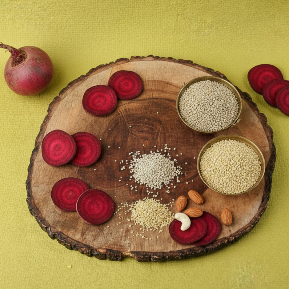 Included in variations like "Beetroot Health Mix"; a great source of iron and nitrates, making the mix nutrient-dense and an aid against anemia.
