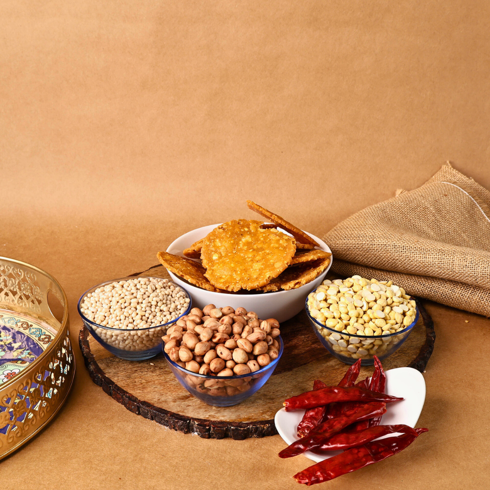 An adjusted version of our pickle blend, finer ground to coat chips and sev evenly. It focuses more on color (Warangal) and moderate heat (Guntur) so kids and adults alike can enjoy the snacks.