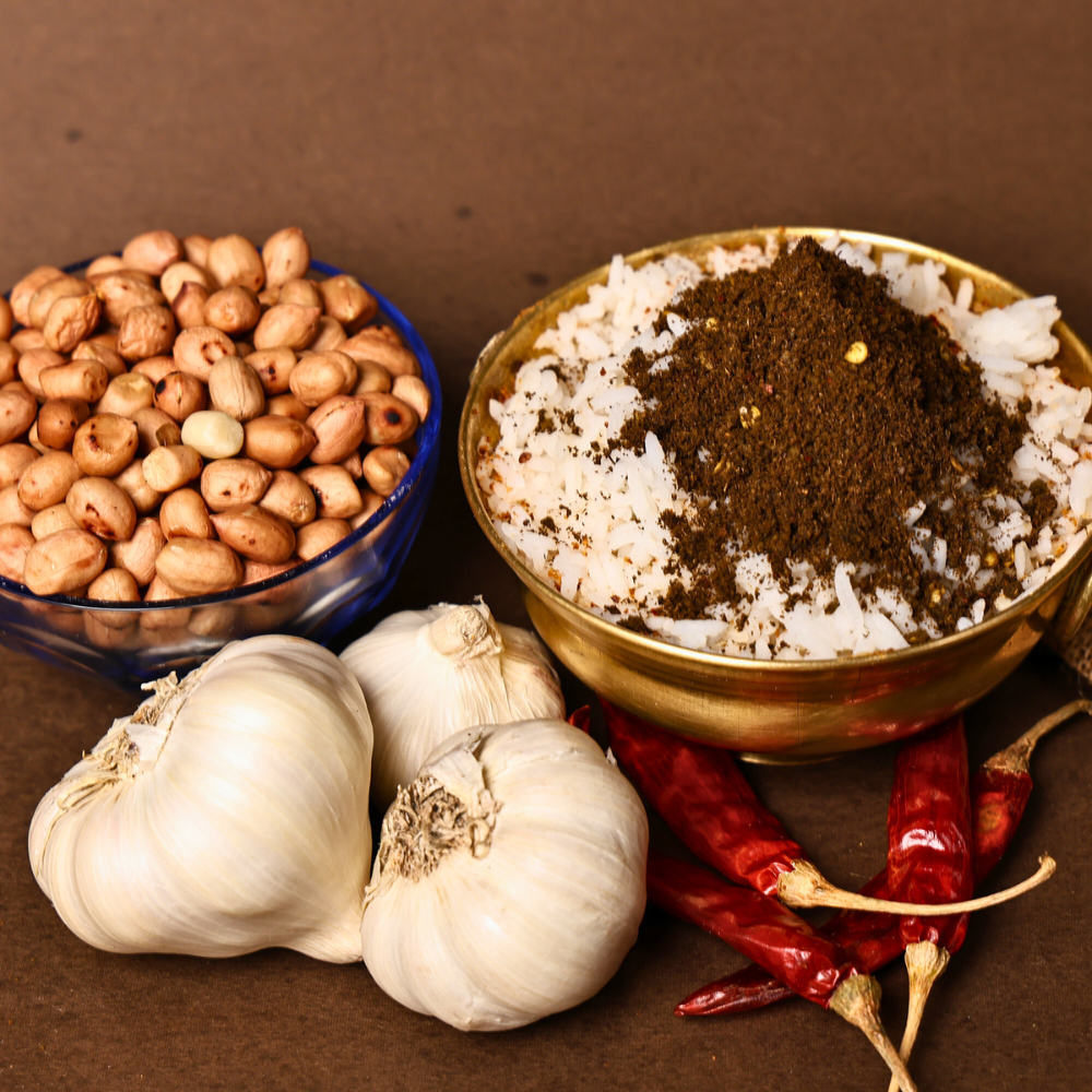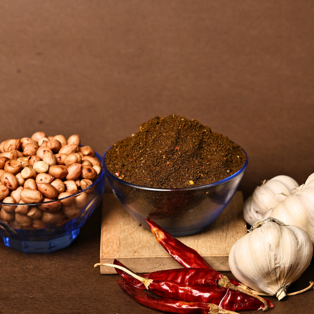 My dear, this Chintachiguru Podi, our Tamarind Leaf Podi, is a truly special and rare tamarind leaf powder, just like we make it in Amalapuram. We gather fresh, tender Tamarind Leaves and blend them with wholesome Peanuts, pungent Garlic, fiery Red Chilli, and a touch of Salt. This homemade Andhra podi brings a unique tangy and earthy flavour to your meals, a taste from the heart of our kitchen.